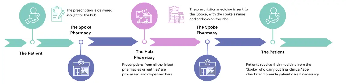 The Human Medicines Regulations 2012 ammendement has come into affect to make Hub and Spoke possible for all pharmacies across England, Scotland, Wales and Northern Ireland. The Hub may assemble medicines for a spoke (the pharmacy) they don't own, allowing pharmacies to utilise hubs to remove the manual work form the pharmacy and create more time for services and other key roles of a pharmacist. Read more about Hub and Spoke here.