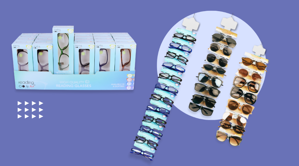 We know retail space in a pharmacy is at a premium, so we have done away with clunky stands that need topping up and instead have easy to display clipstrips and shelf ready packaging for reading glasses.